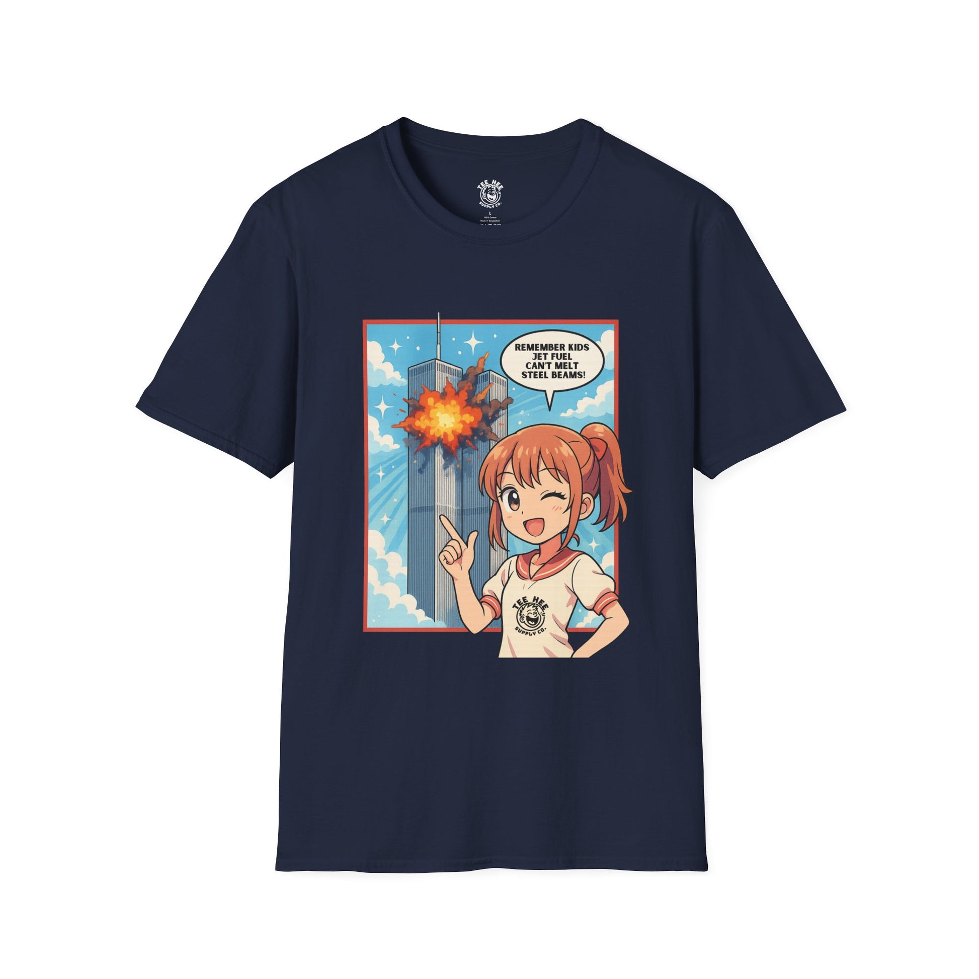 This tee pairs innocent art style with absolutely unhinged commentary — because sometimes the best way to question everything is with a smile and a wink. Perfect for those who’ve read one too many forums, watched one too many documentaries, or just like making people uncomfortable in public.