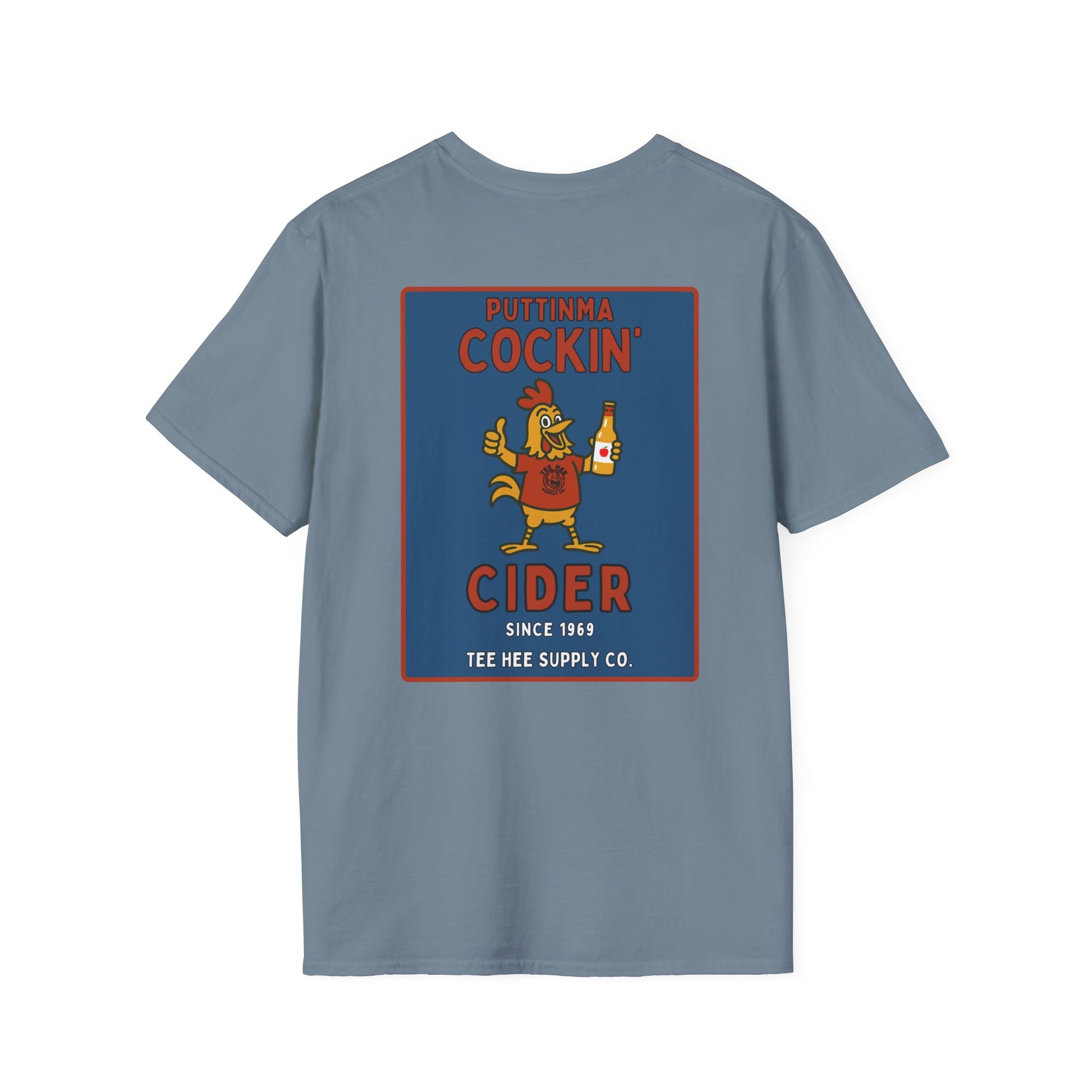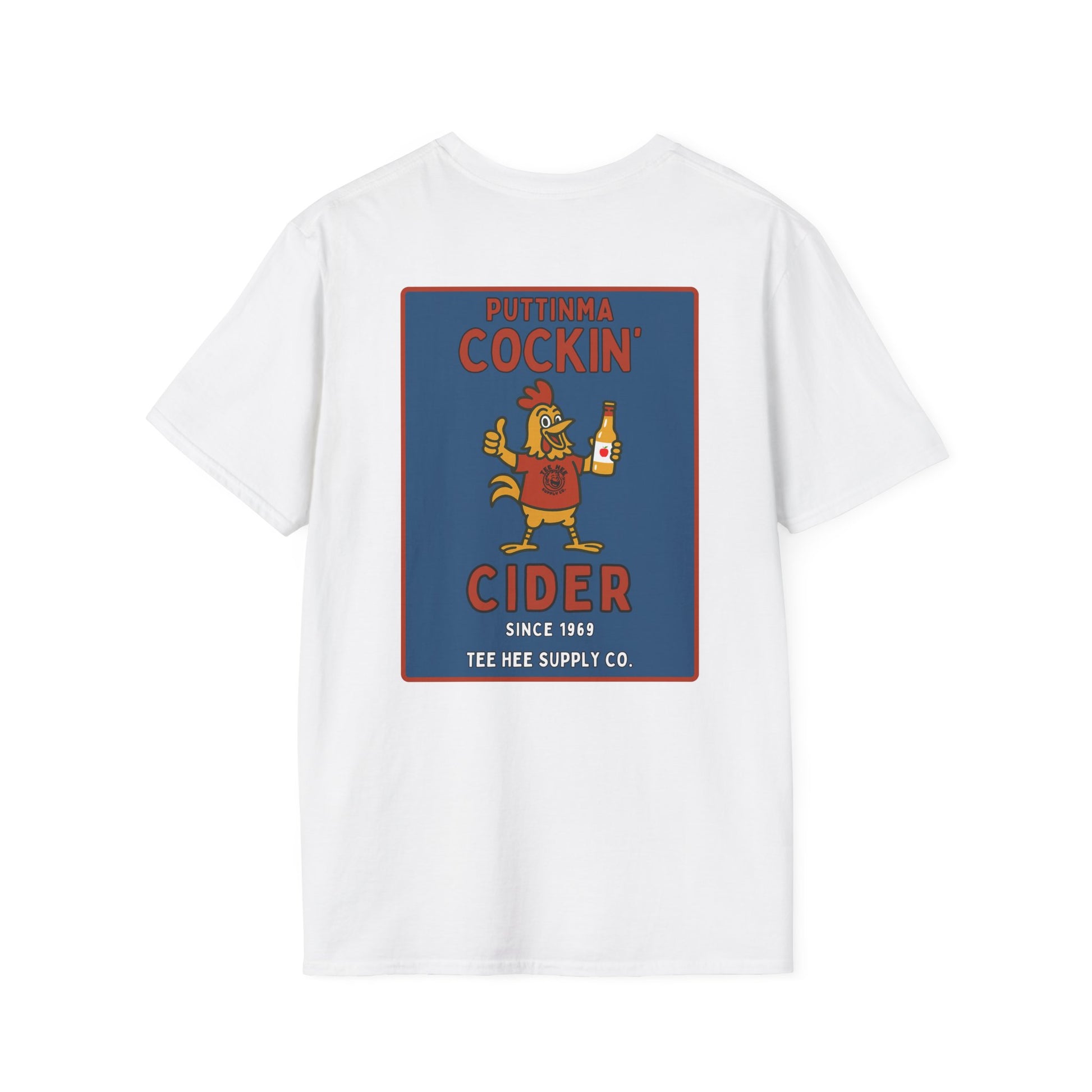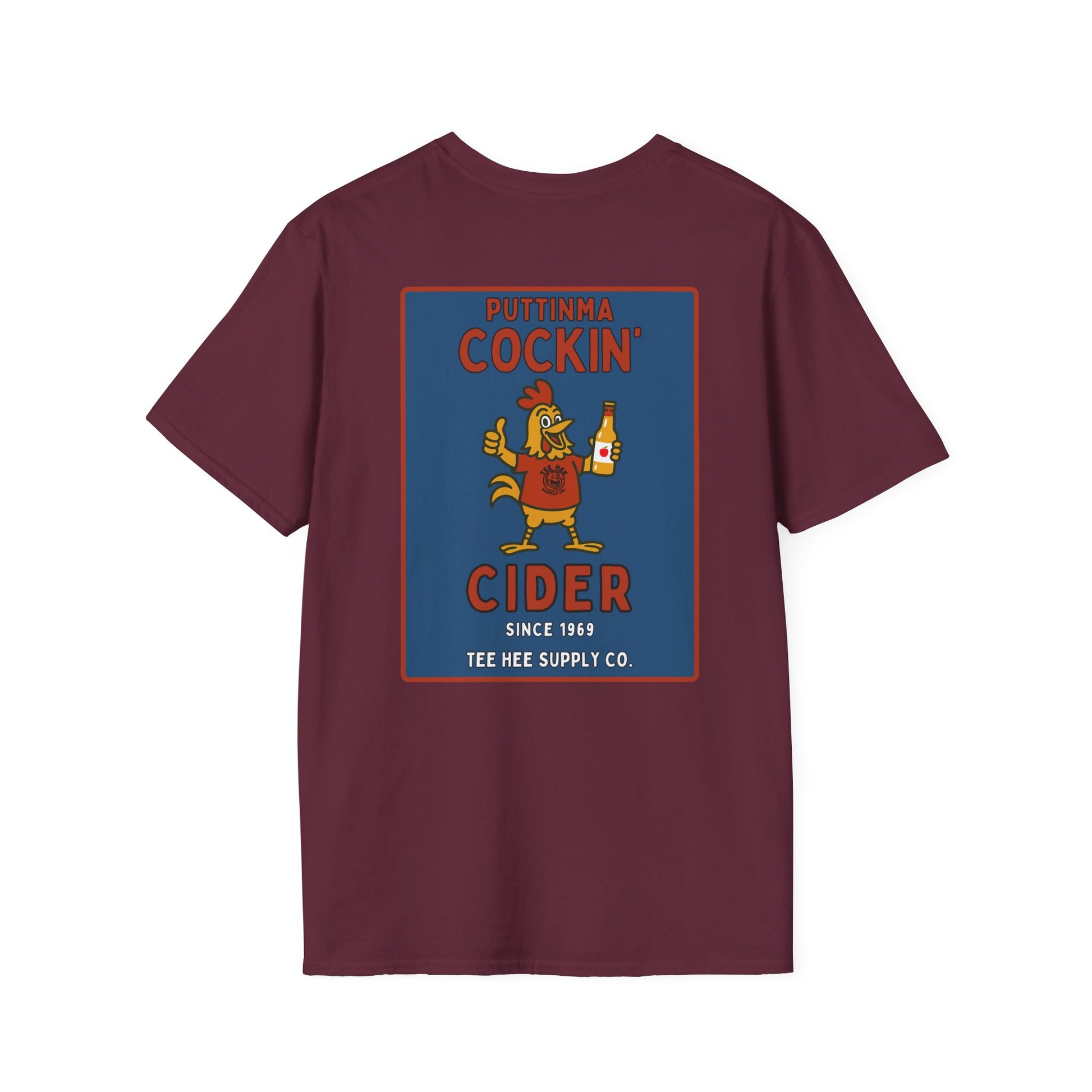 From the fictional cider company you never knew you needed, the Puttinma Cockin’ Cider tee is brewed for degenerates with a refined taste in poultry puns and adult beverages.