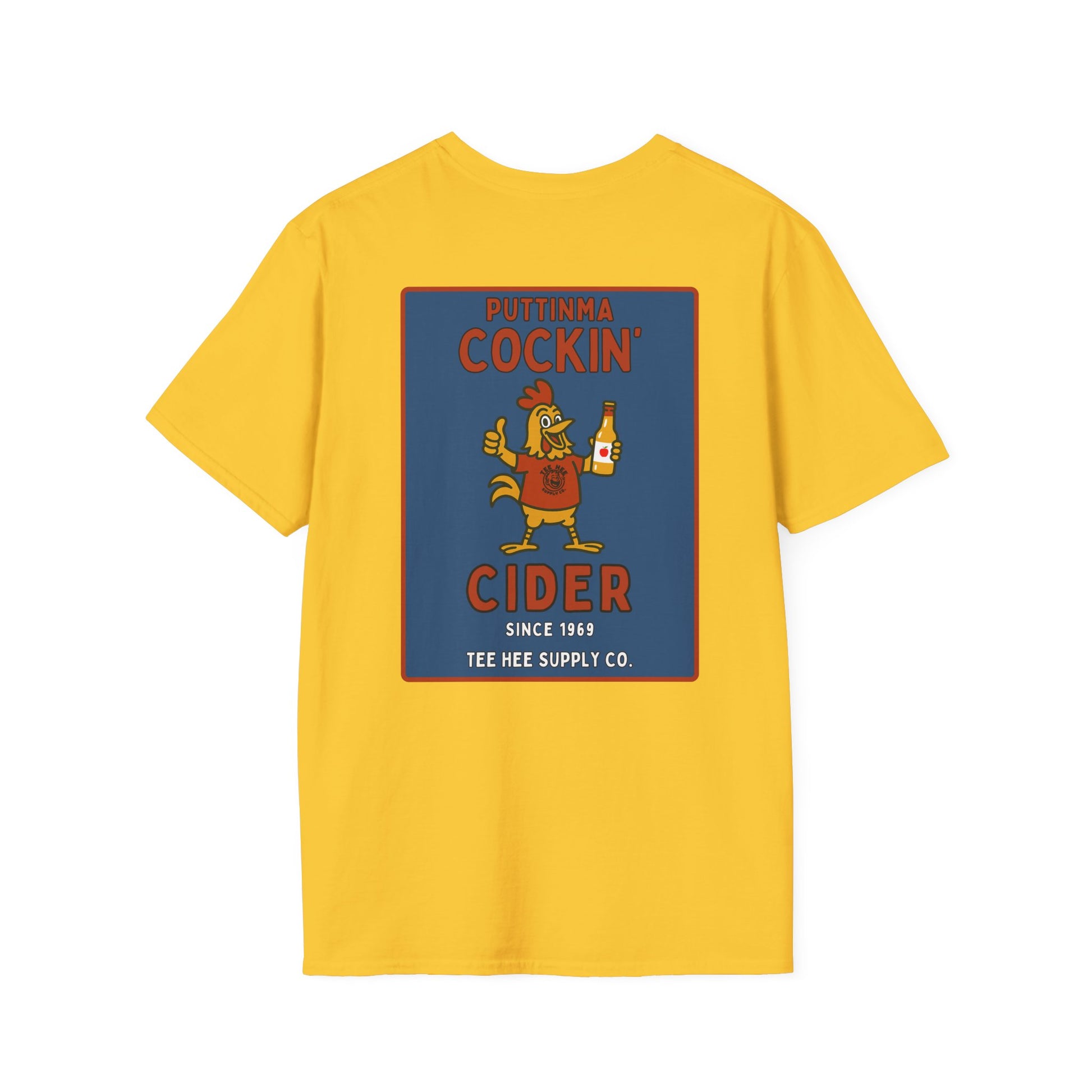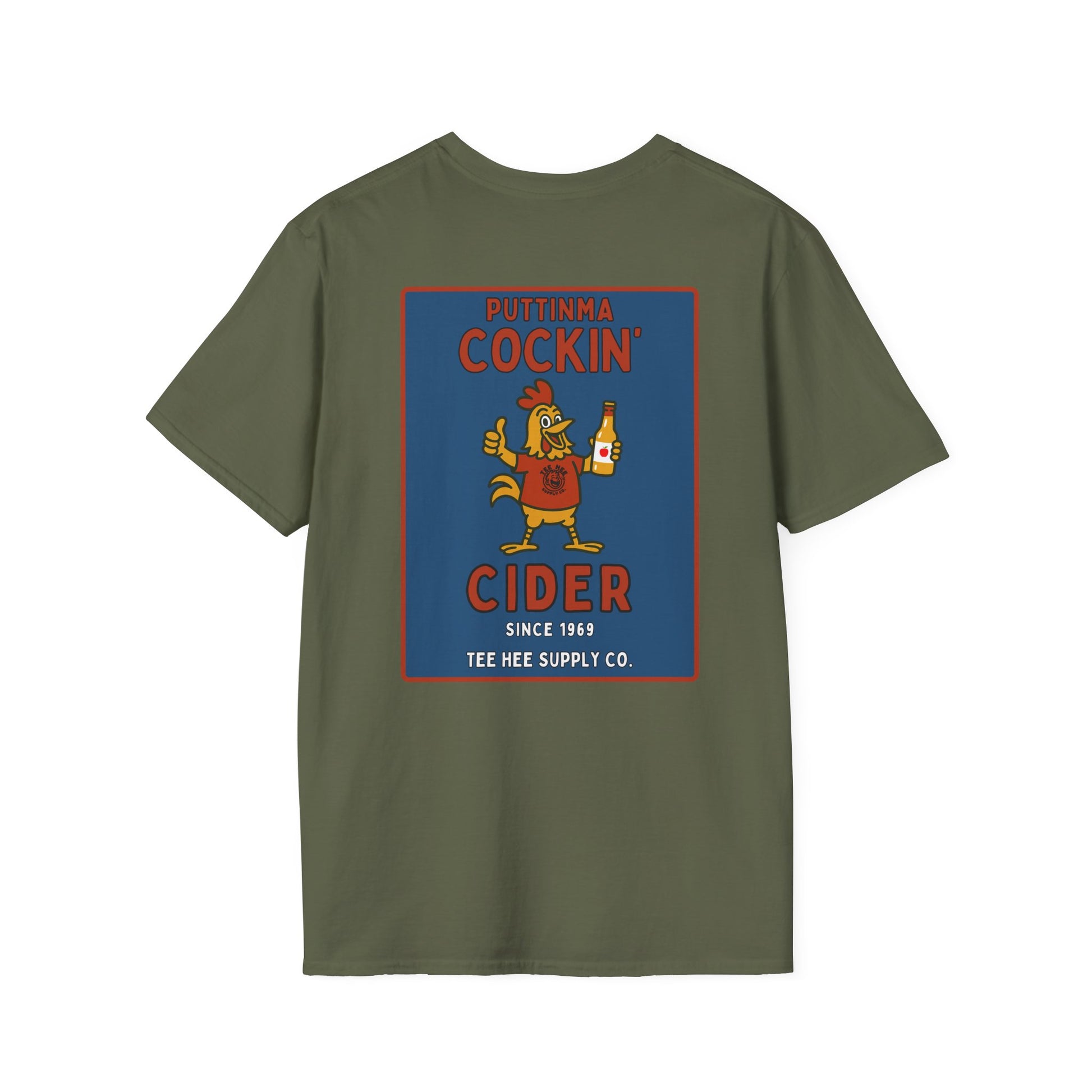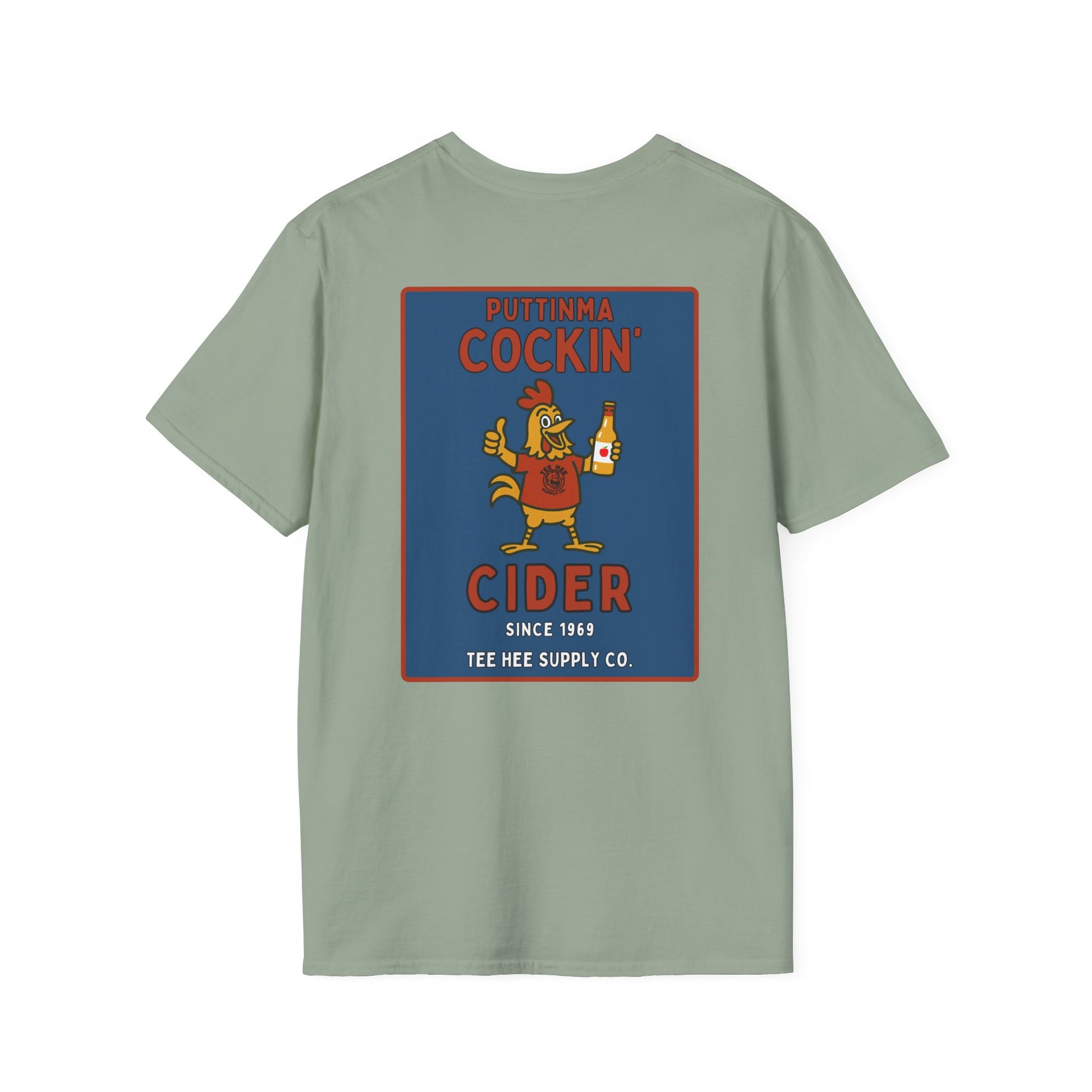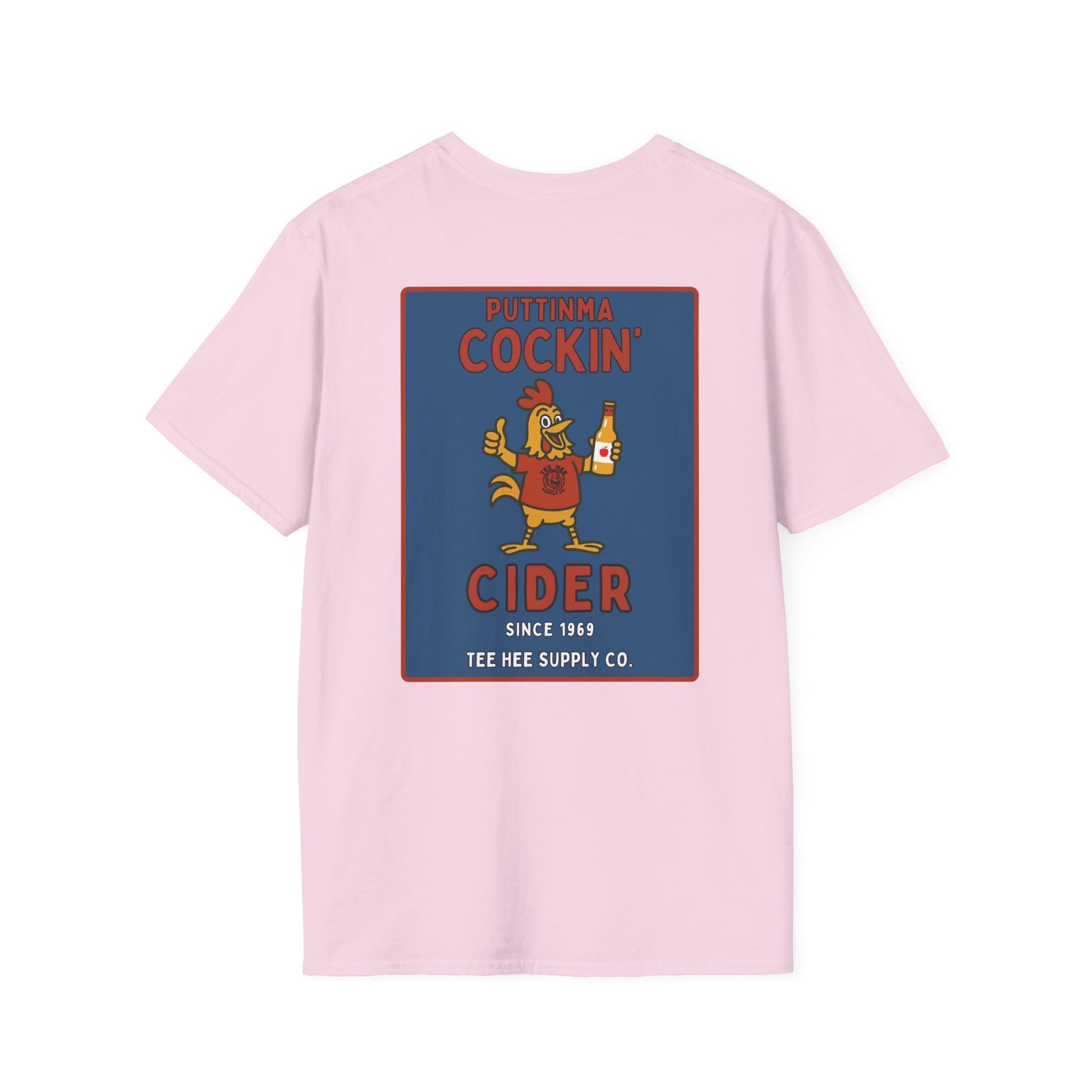From the fictional cider company you never knew you needed, the Puttinma Cockin’ Cider tee is brewed for degenerates with a refined taste in poultry puns and adult beverages.